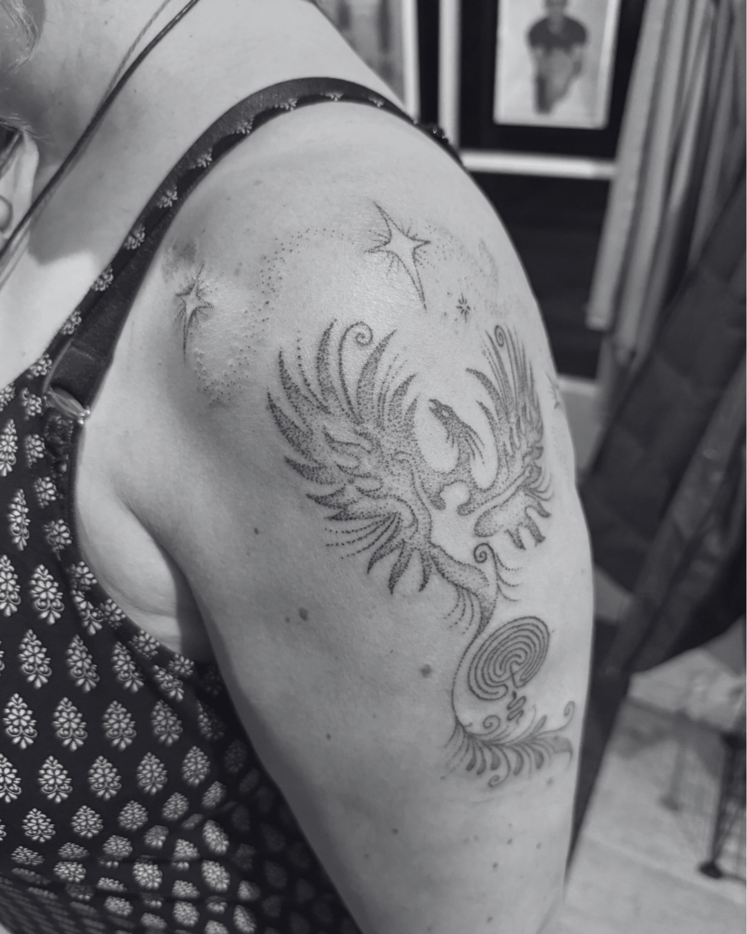 Because we begin our day with a deep-dive into your intention and your Evolutionary Astrology, the design is born from your own energy. It isn’t a surprise I’ve prepared in isolation; it’s a co-creation. We don't start tattooing until you feel a 'full body yes' to the symbol. My 9 years of design experience ensures that while the meaning is deep, the aesthetic is timeless and technically sound.
